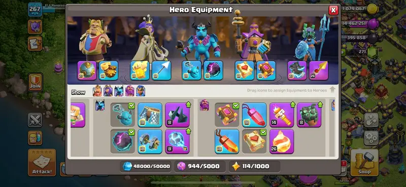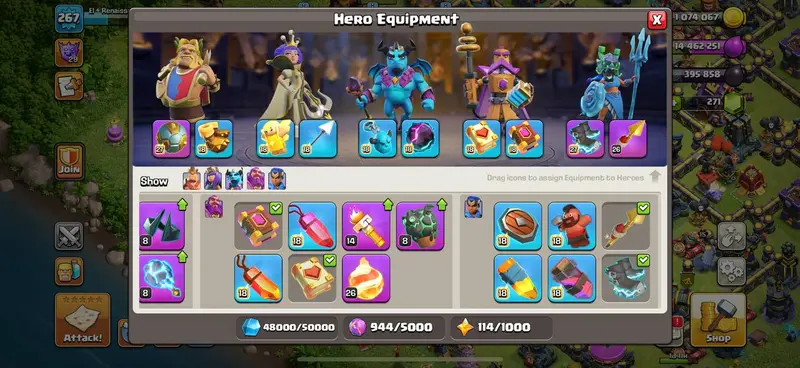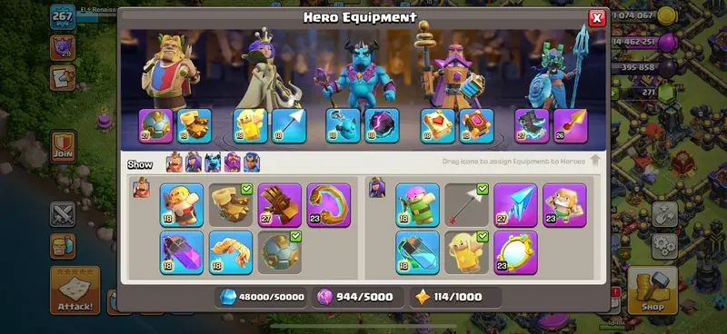 24 Equipment Max - TH 17 - 2016 Obstacle - Hero Max - 267 XP - 3938 War Stars - 9K Cups - Rename 500 - BH 10 - Instant Availability