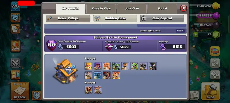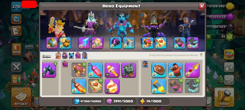 25 EQUIPMENT MAX 💎 TH 17 MAX 💎 MAX HERO -24K CUPS - MAX TROOP - 278 XP - 3971 STAR - BH 10 - SCENERY - 2015 OBSTACLES- RENAME 500 - INSTANT - AVAILABLE