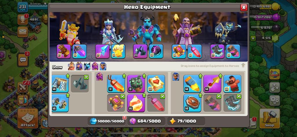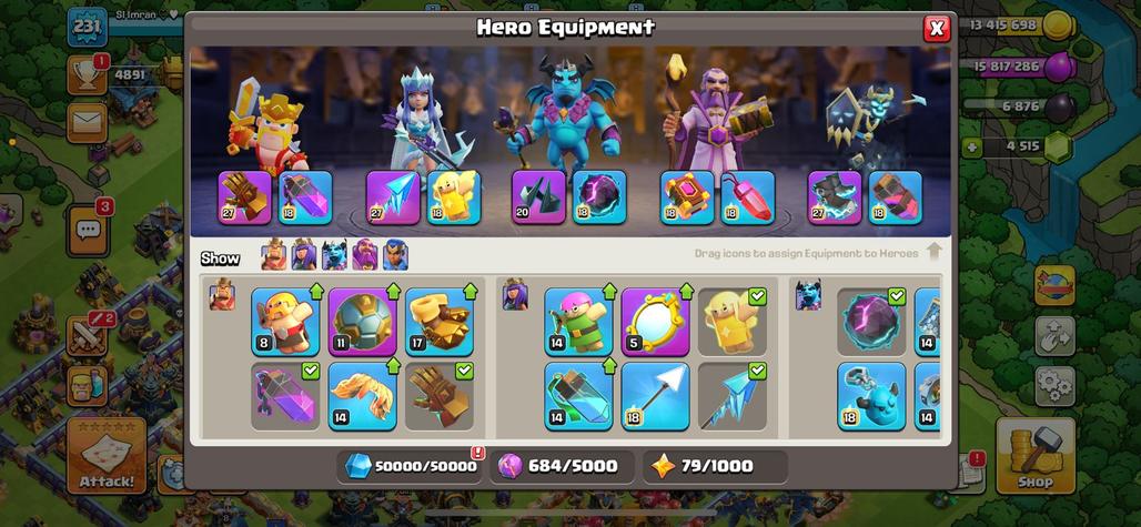 3 HERO MAX TH17 ACCOUNT | AQ 100 BK 83 MP 71 GW 75 RC 50 | GOOD HERO EQUIPMENT | 6 LEGENDARY HERO SKIN 2641 WAR STAR
