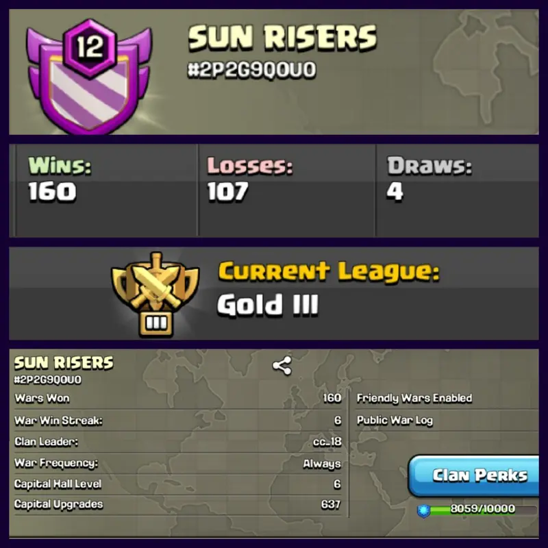LEVEL- 12 || NAME- SUN RISERS || GOLD 3 || CC-6 || POSTIVE WARLOG