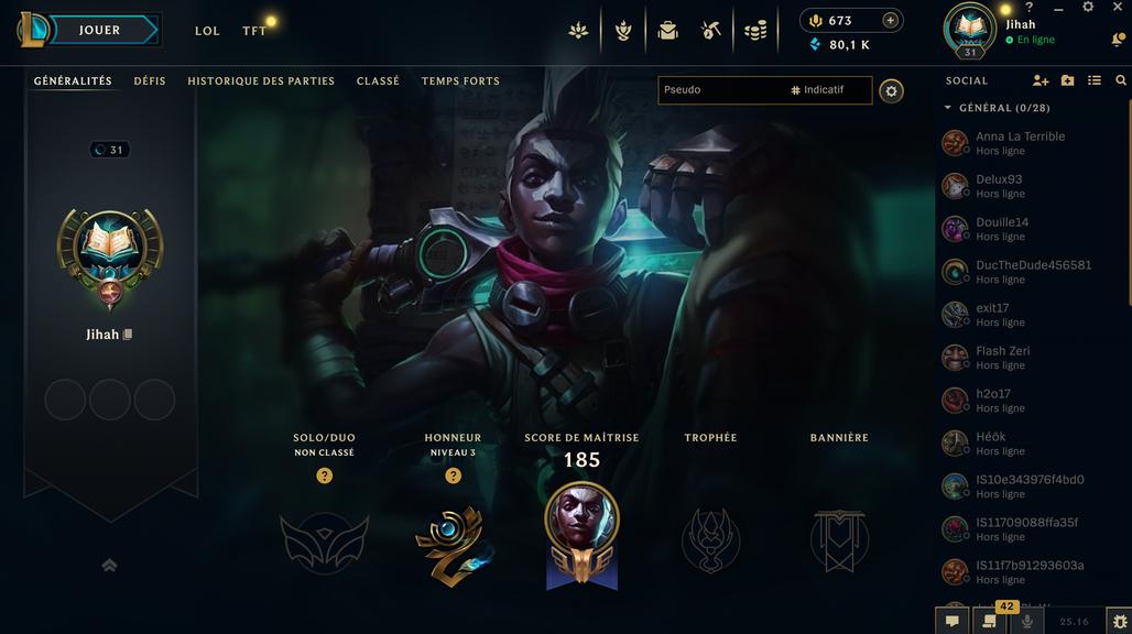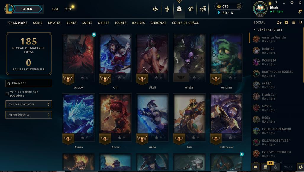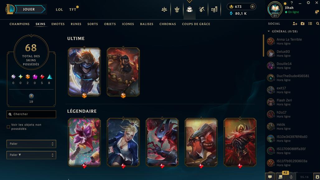 account League Of legend 132 champions - 68 Skins - 19 mythics - 80000 BE - 675 rp - Lvl 31