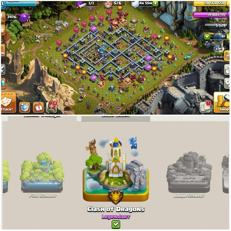 [Clash Of Dragon Scenery]||Best Th13||6 Epic Max||Leauge Champion Skin||6th Builders||Lot Of Magic Iteams||Exp 181