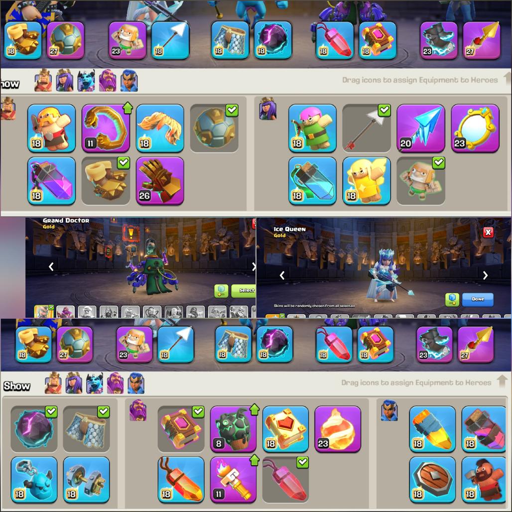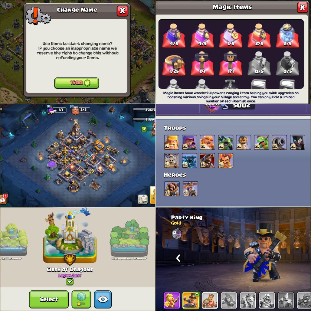 Clash of dragon scenery -- Th17 Max -- 4 Hero maxed -- 24 Equipment Max -- Full Defence Max -- 9 Pet Max -- Max Types wall, Troops -- Exp 239 -- Magic full -- Nc 1500 Gems -- Hero skin