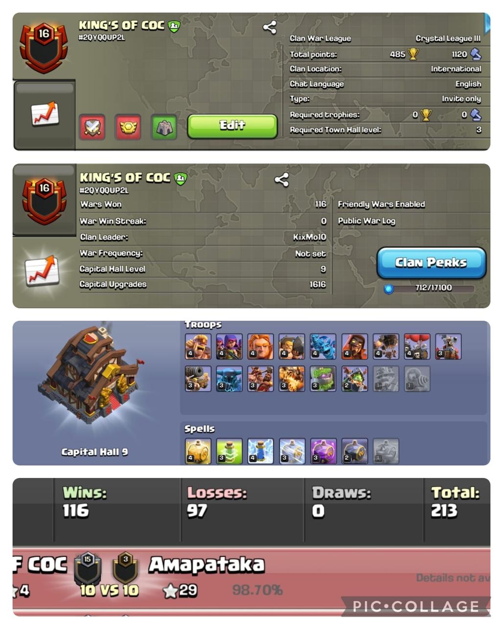 [CRYSTAL 3+CC 9] NAME : KINGS OF COC | LEVEL : 16 | WARLOG W-L-D : 116-97-0