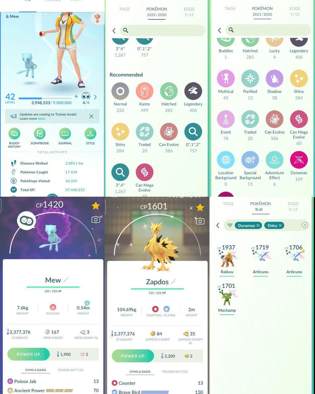 G204] LEVEL 42 STACKED ACCOUNT I SUPAR RARA SHINY MEW I 284 SHINY I 406 LEGENDARY I SHINY GALARIAN ZAPDOS TRADABLE I 201