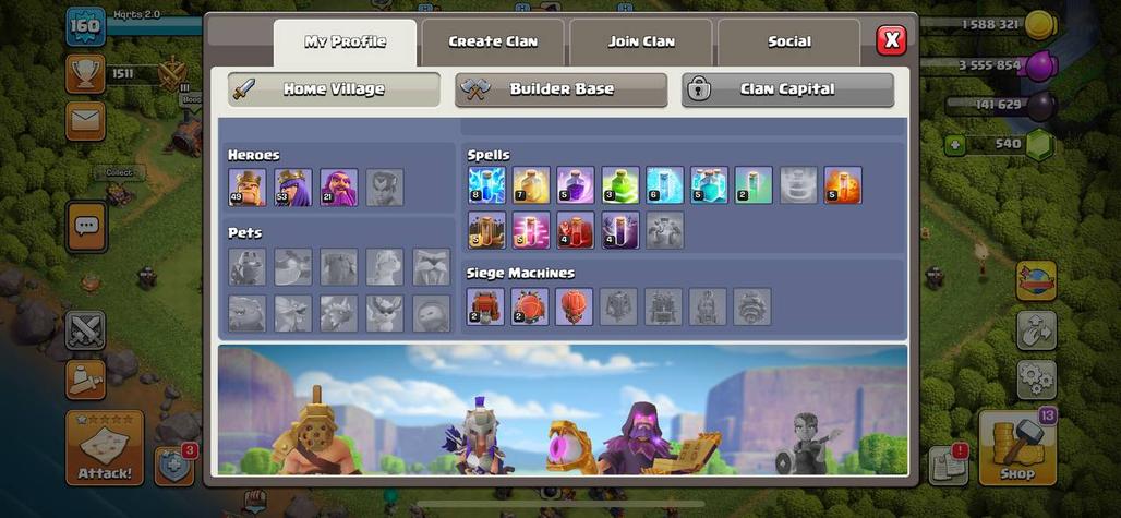 🔥TH13 NEAR MAX XP142🔥 | HERO 60.67.41.33.18 | GLOVES 11 | WALL MAX | CHANGE NAME 500 | 4 SKIN | INSTANT DELIVERY