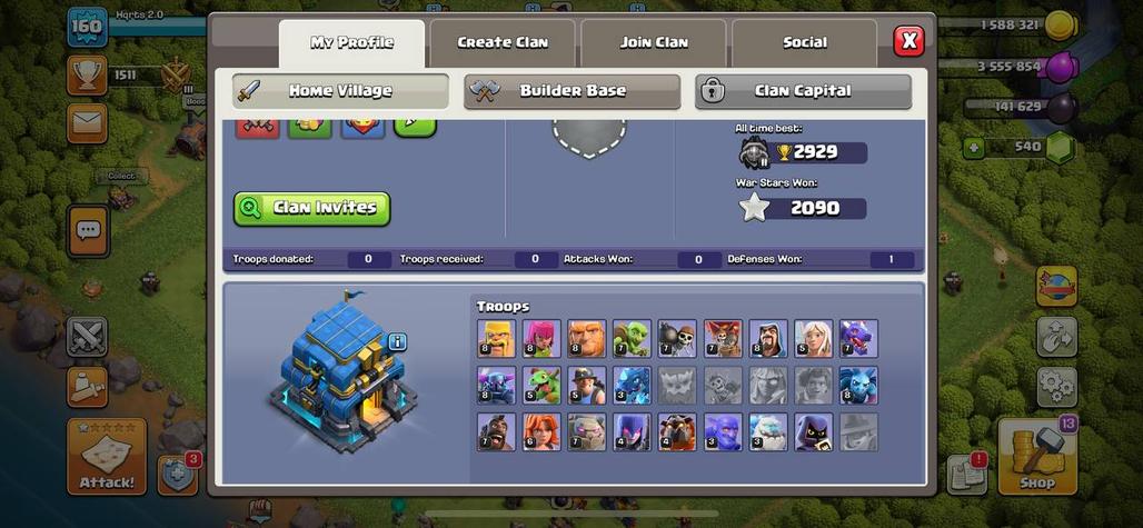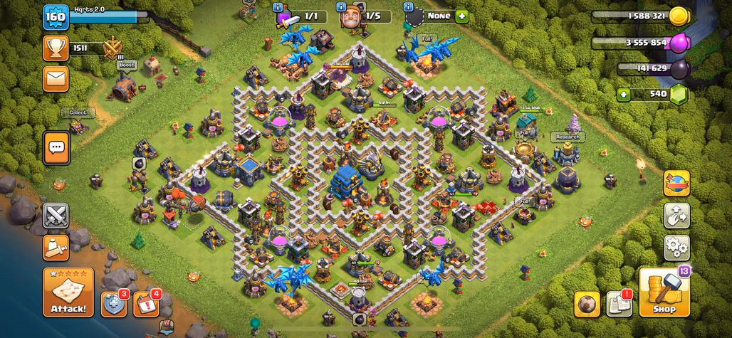 Town Hall 13 Clash of Clans Level 112 5 Builders 8 Builder Hall
