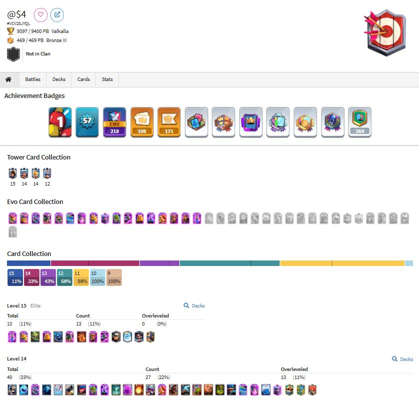 LV 57๐Ÿ† | ARENA 23 | TROPHIES 9397 | 121 CARD | 17 EVO | 13 ELITE CARD | EMOTE 108๐Ÿ˜Ž | MAX CARD 40 | 7 KING COLLECTION