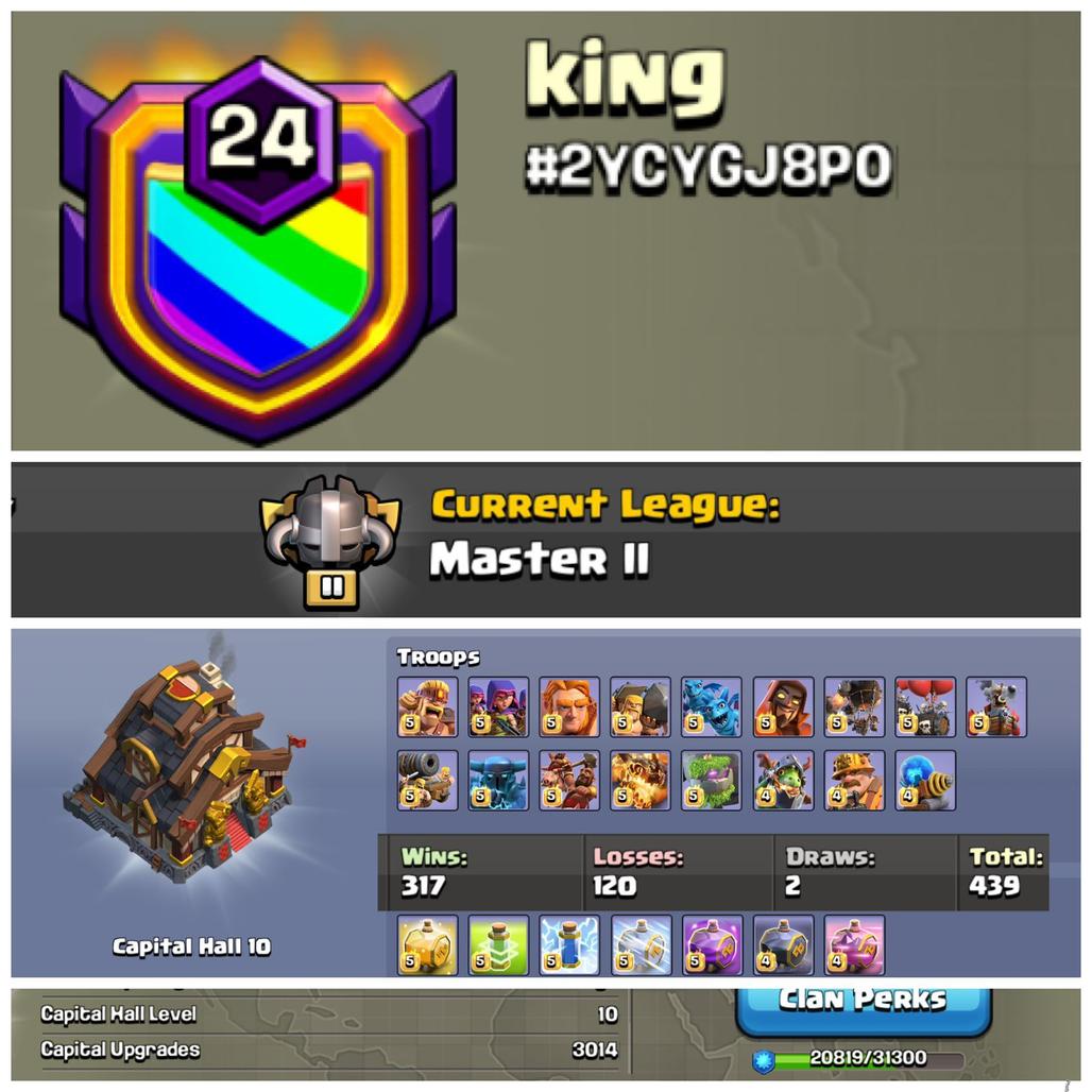 NAME- king | LVL 24| WARLOG W-L-D:317-120-2 | CWL League: MASTER 2| CC: 10!!