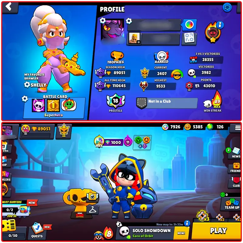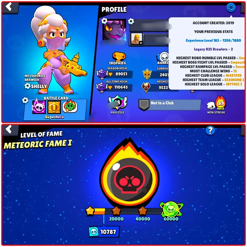 Prestige 18 | 110k Trophies ATH | 94 Brawlers | Meteoric Fame 1 | 356 Skins | R35 Pin | Instant Delivery