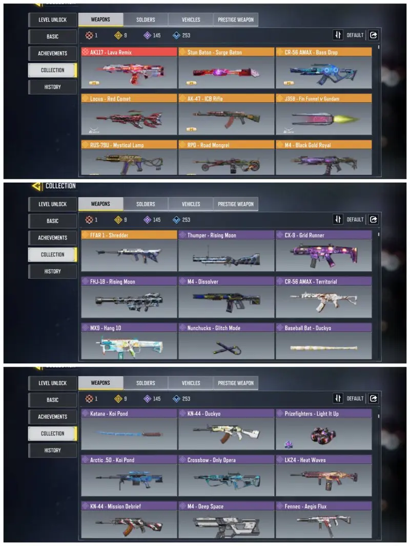 RANK LEGENDARY | 1 MYTHIC | 9 LEGENDARY | 145 EPIC GUNS | 56 EPIC SOLDIER | 28 EPIC VEHICLE | FULL ACCESS