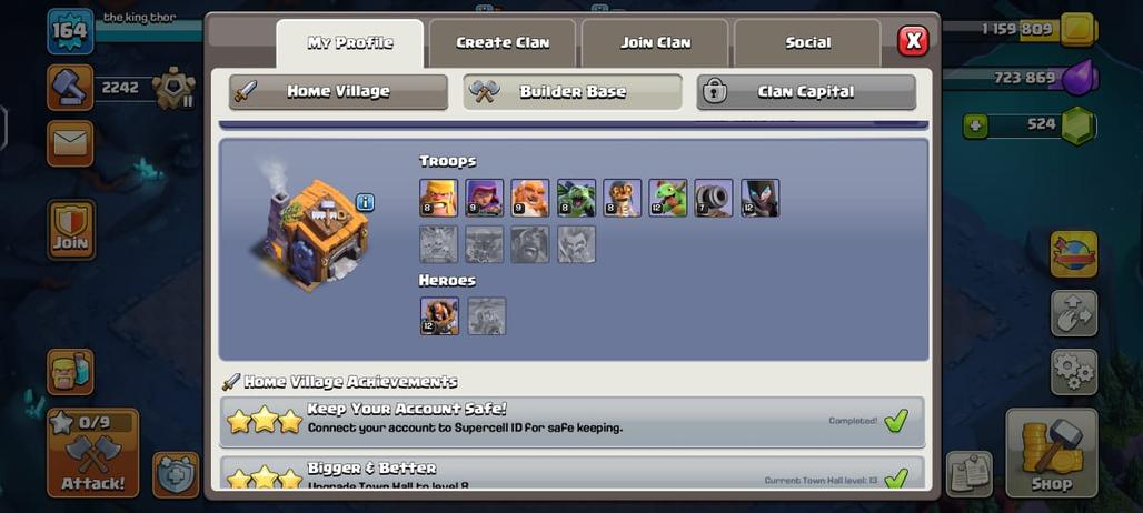 TH 13 MAX ||INSTANT NC || HEROES 75-75-42-50-25 |7 EPEIC EQUIP (MAX SB GG RS) (17-FA 8-MM 11-FB 8-EB) || SKINS - MORE