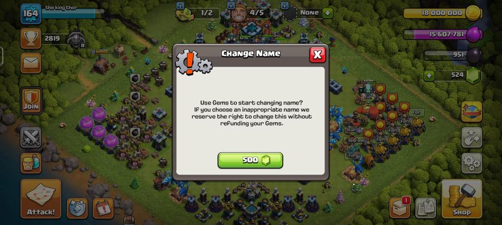 🔥500 GEMS ACCOUNT NAME CHANGE (AVAILABLE)