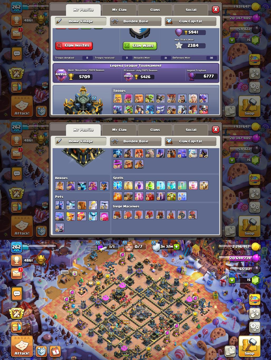 TH 17 NEAR MAXED|GG-FA-EB LVL 27|SB LVL 26|RS LVL 23|2 SCENERY|13 SKINS|BUILDRR BASE MAX|SOME LVL CRAFT AND TRAPS LEFT|