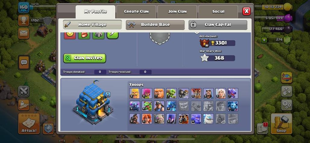 TH12 || XP 160 || HEROES 45-65-19 || 368 WAR STARS || NAME CHANGE FREE || INSTANT DELIVERY