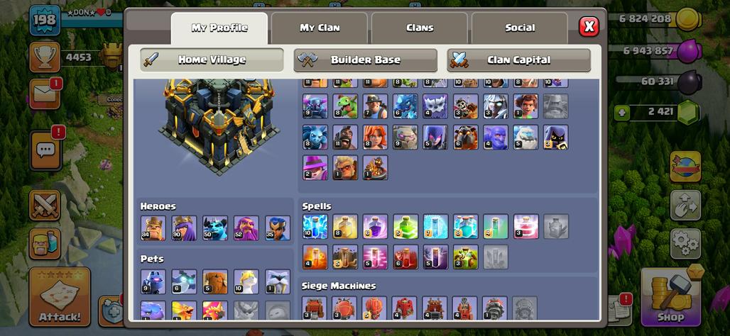 TH17 High | Good Heroes 84/90/50/52/35 | Good Epic Equipment ( SB+GG+MM+Fb+Rs+Eb) | 8 Epic Equipments | 2400